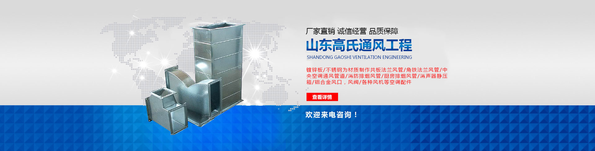 山東高氏通風管道工程有限公司主要經營通風管,酒店廚房排煙罩酒、黑白鐵加工已有多年,主要從事通風管道設計、制作、安裝為一體的企業,風雨中我們在濟南的通風管道行業深受客戶的信賴,公司成立之初即確定一個高起點,公司擁有專用通風管生產線,各種設備齊全。 公司產品主要有,以鍍鋅板、不銹鋼為材質制作共板法蘭風管,角鐵法蘭風管,空調通風管道,消防排煙風管,廚房排煙風管,消聲器,靜壓箱,鋁合金風口,風閥,各種風機,等空調配件。 公司擁有高素質管理人員,業務素質高精、管理能力強,展望未來,任重而道遠,我們愿與各業同仁一道,相互進步,共同發(fā)展,服務回饋社會,...